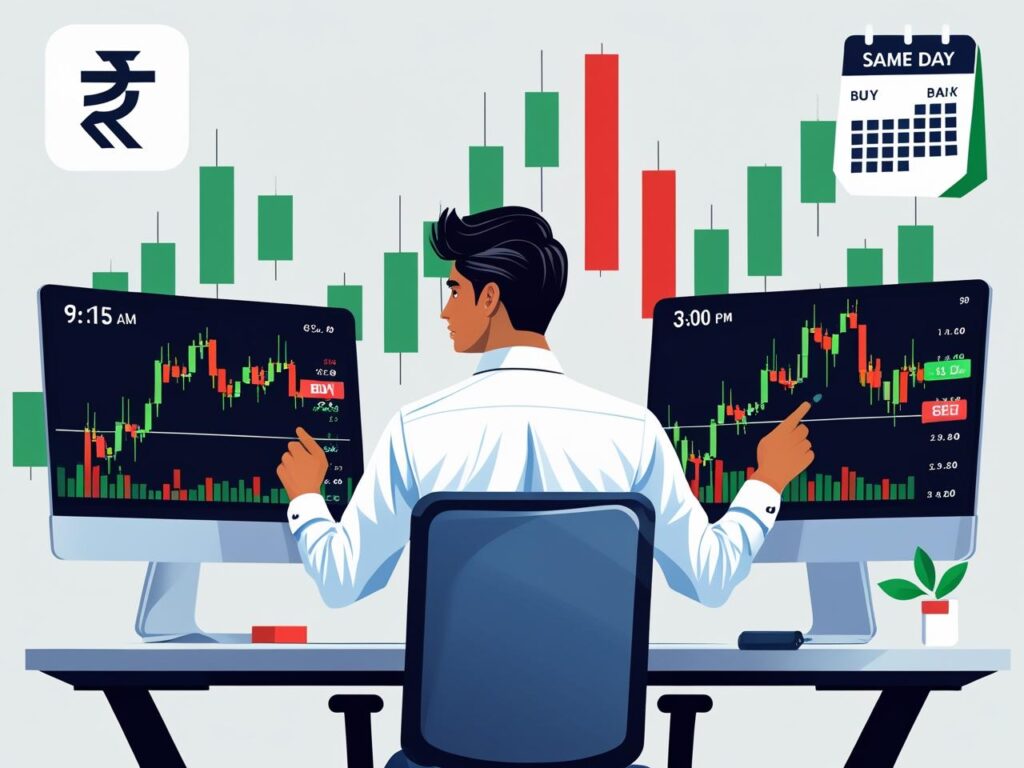 Intraday trading means buying and selling stocks within the same trading day — you never hold positions overnight. The goal is to profit from small price movements during the day, whether they go up or down.